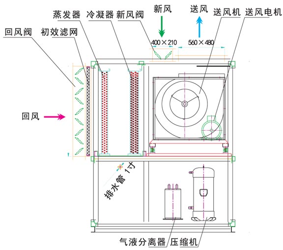 熱少龍三集一體室內(nèi)泳池恒溫除濕熱泵 HW系列結(jié)構(gòu)展示: