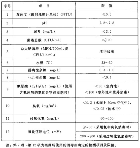 1 我國游泳池初次充水和補水水質要求