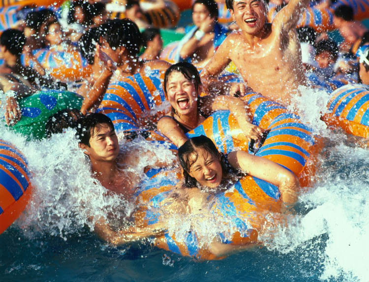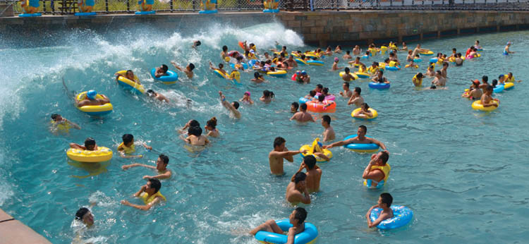在戲水樂園中,它在所有水池里一般來說是最大的,同時也是最創造氣氛的。水面上起伏的層層波浪總是帶給游人陣陣按捺不住的激動,以致國外一些戲水樂園僅設置這樣一個大池就已使游人樂而忘返了。造浪池池底要設計成斜坡狀,由淺入深。這樣,讓游人有一個從觀浪欣賞、踏浪蹚水,最后暢游其中的過程,領略到回歸大自然的感受,并且這也有利于波浪的形成與發展。造浪機及波浪發生口要設置在水池最深處。造浪系統在運作時,其能耗較大,故通常不長時間持續造浪。一般是每小時造浪1-2次,每次10-15分鐘長。